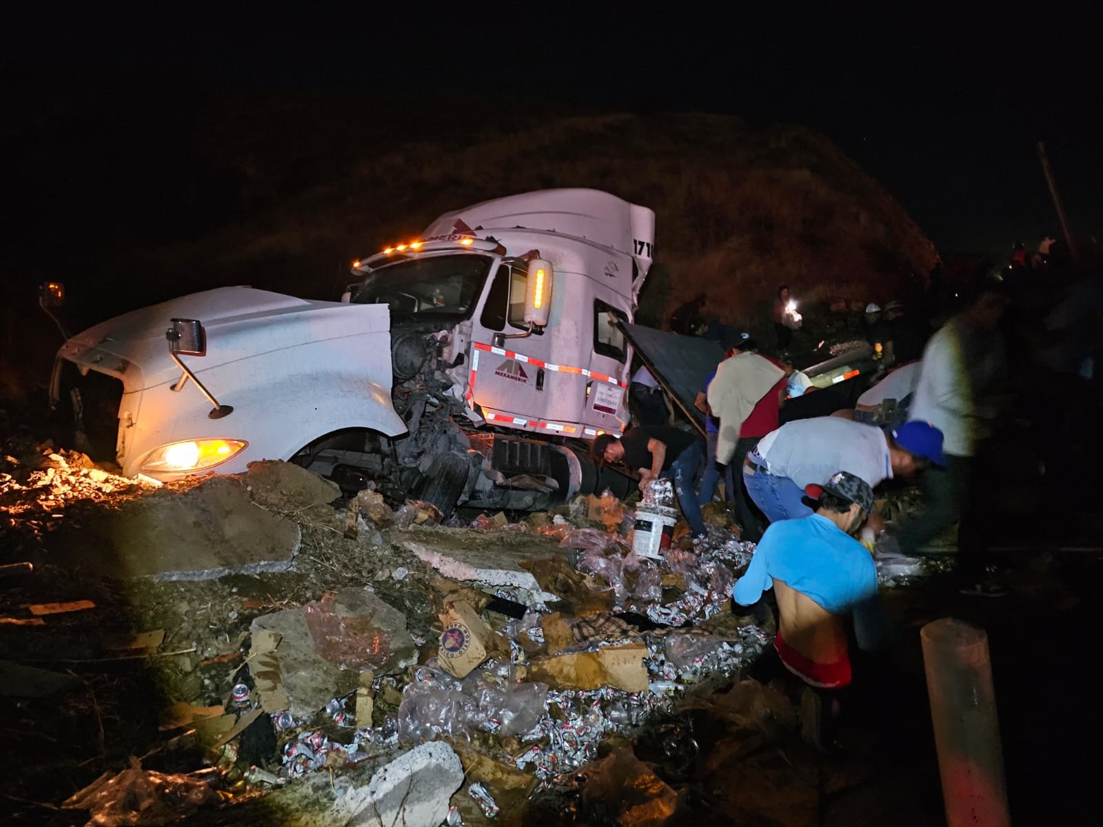 Vuelca camión tipo quinta rueda en la carretera 45 y su carga es sustraída por civiles