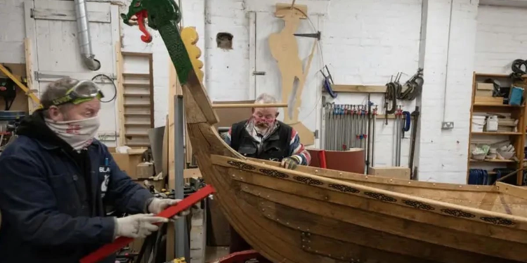 En un taller de Darlington, al noreste de Inglaterra, un grupo de veteranos militares construyó un barco vikingo de madera de roble como parte de un proyecto que combina el trabajo manual con terapias de salud mental.