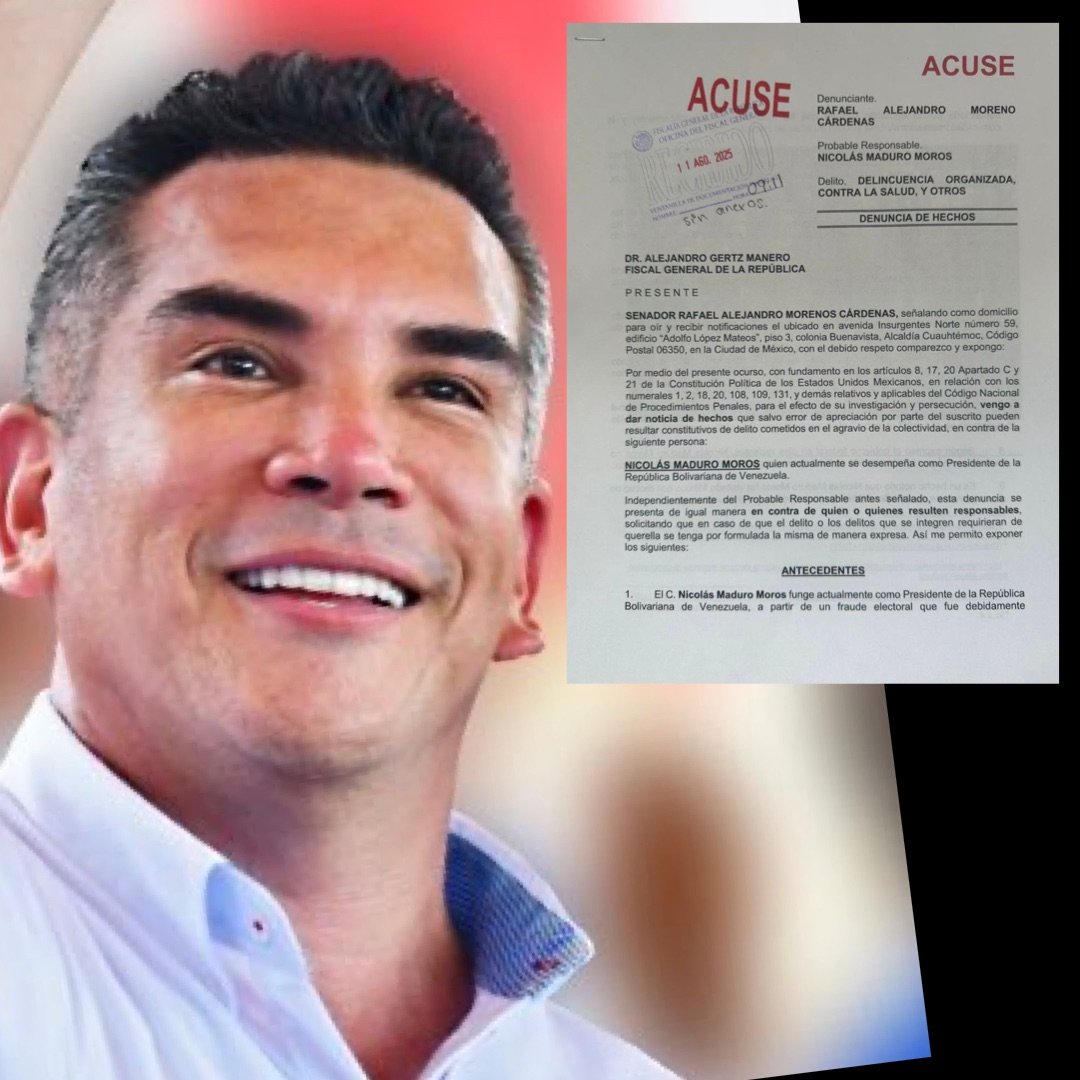 El dirigente nacional del Partido Revolucionario Institucional (PRI), Alejandro Moreno Cárdenas, presentó una denuncia ante la Fiscalía General de la República (FGR) contra Nicolás Maduro, presidente de Venezuela, por presuntos vínculos con cárteles mexicanos y otras organizaciones delictivas.