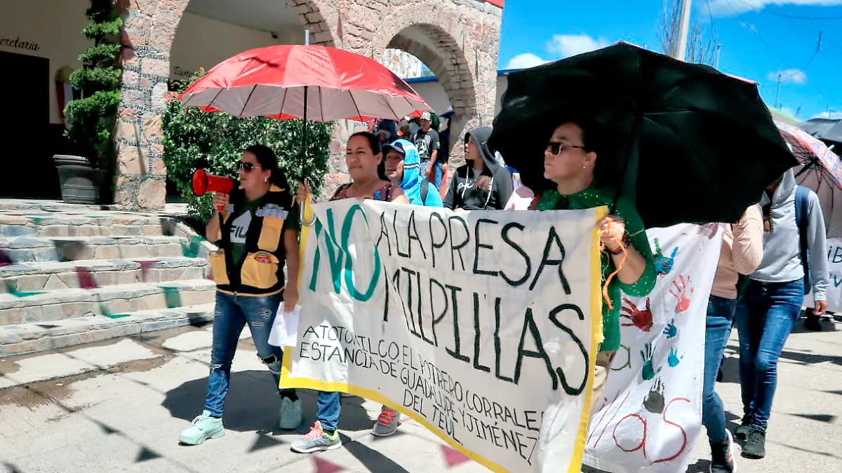 Con consignas y pancartas, alrededor de 200 habitantes de este municipio marcharon este viernes para manifestar su rechazo a la construcción de la Presa Milpillas, considerado el proyecto hídrico más grande y costoso en la historia de Zacatecas.