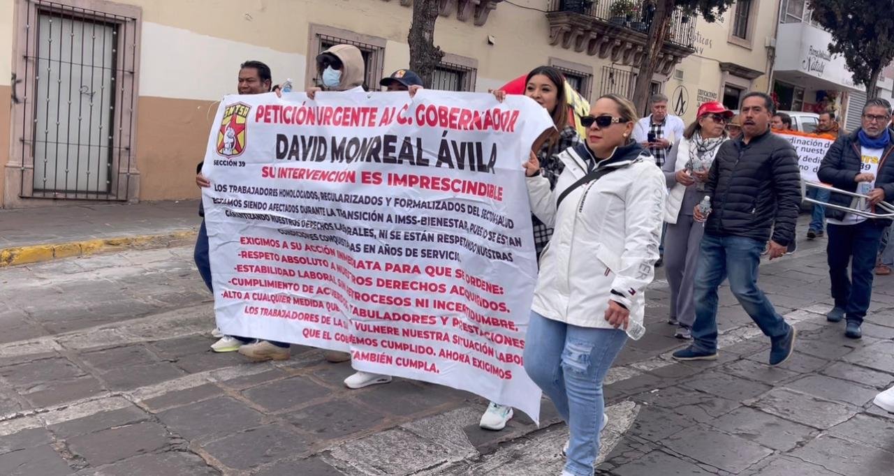 Más de mil trabajadores afiliados al Sindicato Nacional de Trabajadores de la Salud (SNTSA) realizaron este miércoles una marcha pacífica por las principales calles del Centro Histórico de Zacatecas, para exigir a las autoridades estatales el cumplimiento de acuerdos laborales previamente pactados.